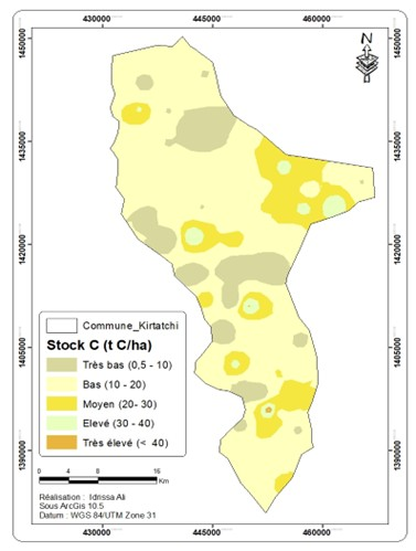 Figure 5 : Stocks de carbone organique à 40 cm du sol de la commune rurale de Kirtachi.