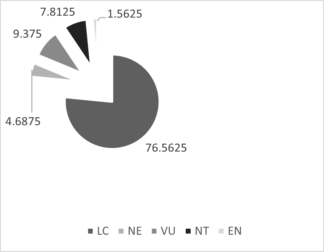 | Figure 4: Proportions (%) of IUCN status of inventoried species. EN= Endangered; LC= Least Concern; VU= Vulnerable; NE= Not evaluated; NT= Near Threatened |